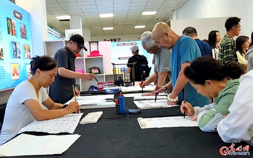 临潢家园社区居民在书法练习室练习书法。王蕾摄