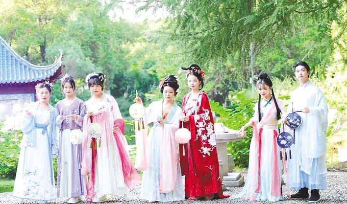 八月二十二日,在“知音城”汉阳的七夕节上,不少女生身穿汉服入园,有的还手提一盏国风花灯。