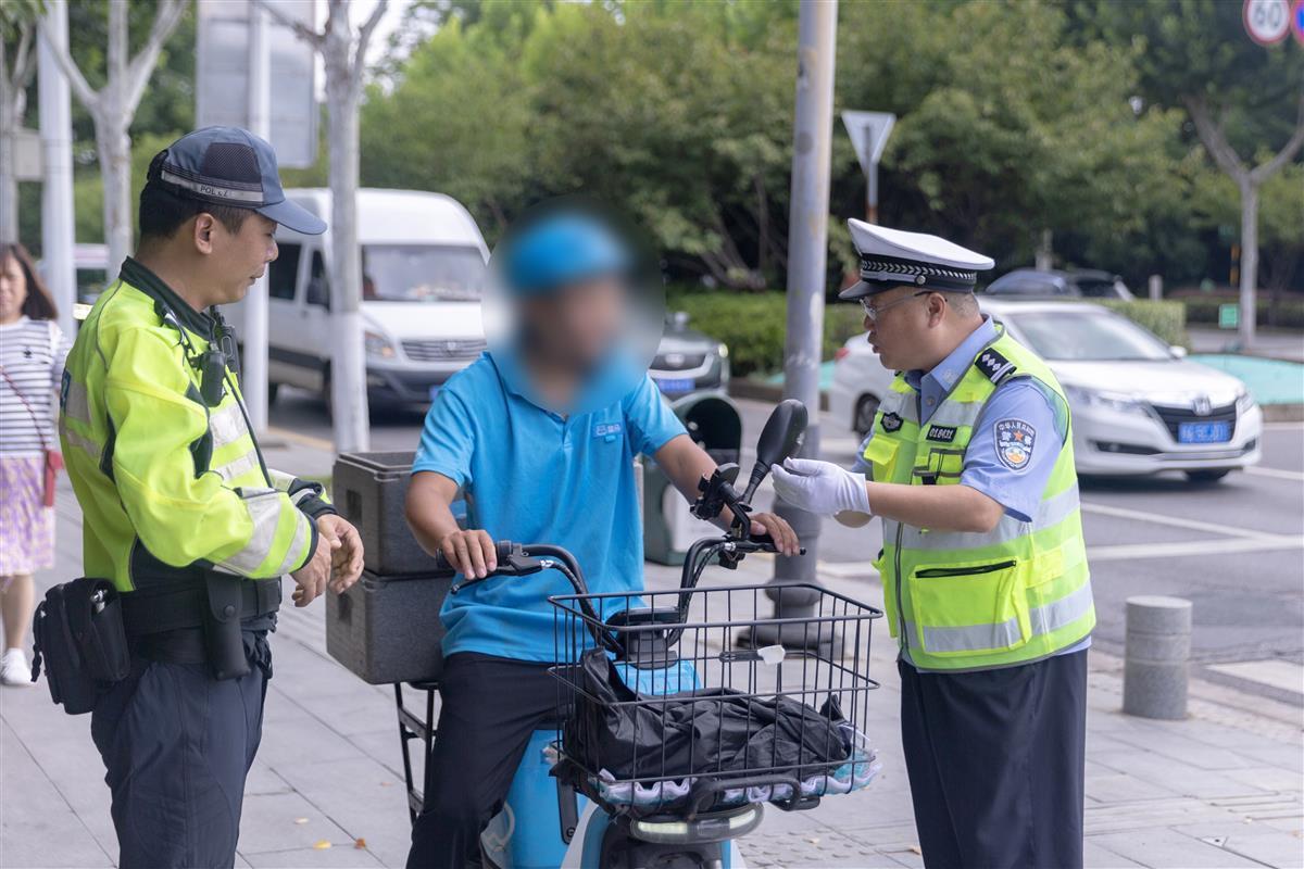 不久一名市民骑着电动车路过,郭建波和周密在其等着过马路时告知,现在啥样的电动车才符合要求,骑行时需要注意怎么样安全,戴什么样的头盔合格……