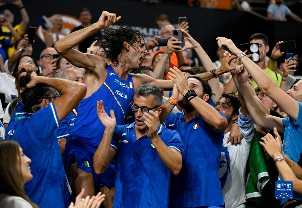 8月22日,坦贝里在比赛后庆祝。新华社记者 郑焕松 摄