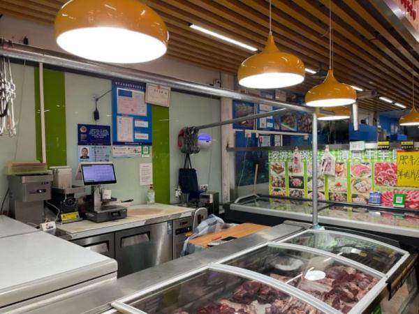 8月16日,中国新闻周刊跟随海淀市场监管局来到五道口集贸市场,这里是《办法》颁布后海淀区更换“生鲜灯”的试点单位,也是海淀区较早完成更换的市场。相关负责人表示,在接到海淀区市场监管局通知后,市场第三天就完成全部换装。“换装的吊灯一共42盏,主要涉及肉类和水产档口,光源则全部改用日光灯。”