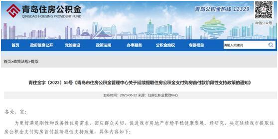 8月22日,青岛住房公积金管理中心发布《关于延续提取住房公积金支付购房首付款阶段性支持政策的通知》。