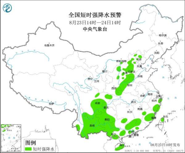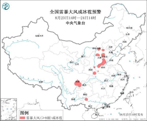 中央气象台8月23日10时发布强对流天气蓝色预警: