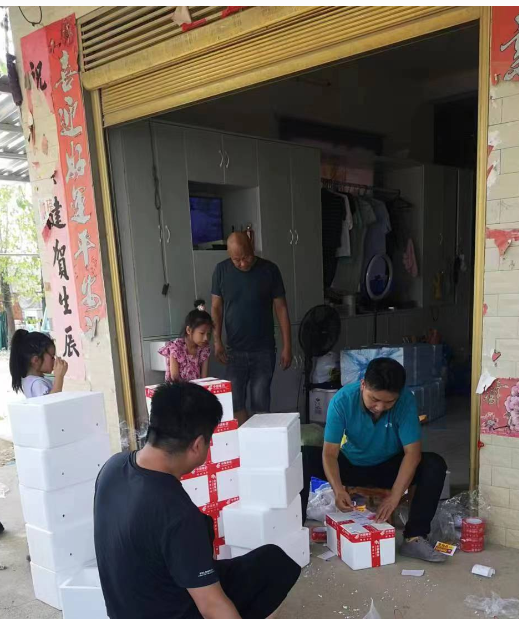 8月21日,应城市汤池甲鱼养殖协会门前热闹而有序,汤池镇寄递物流工作人员正搬出准备好的纸箱和打包胶带,为网络直播卖出的甲鱼进行分拣和托运。