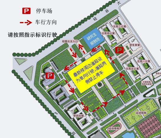 (2)北门设为迎新主要入口,车辆只进不出,除接送新生车辆外其他车辆禁行。