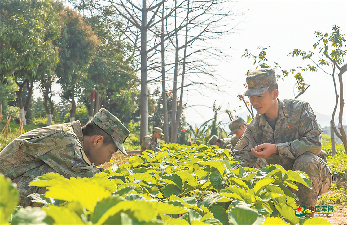 第73集团军某旅某连组织官兵进行采摘。麻环远 摄