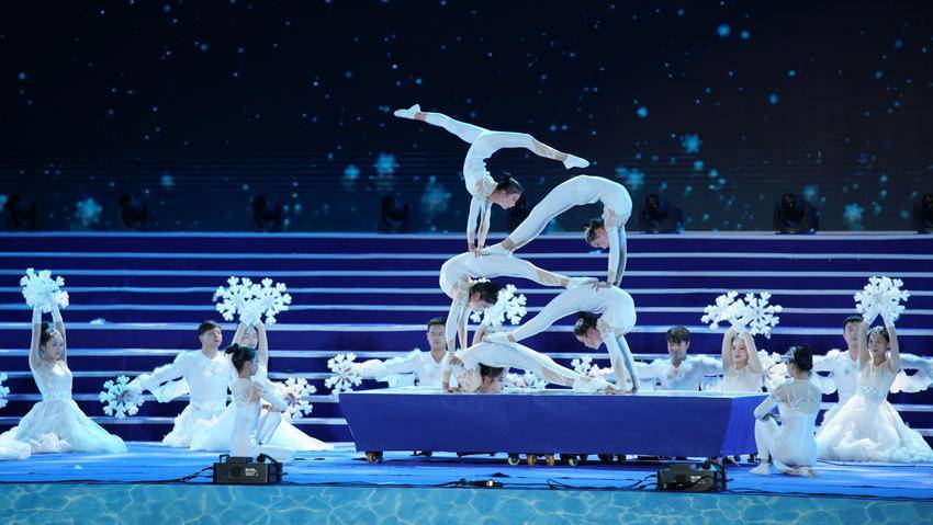 黄冈市杂技团与秭归屈原艺术团共同演绎《雪精灵》。
