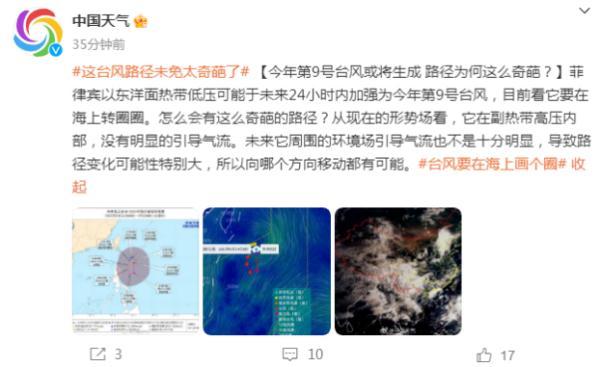 从现在的形势场看,它在副热带高压内部,没有明显的引导气流。未来它周围的环境场引导气流也不是十分明显,导致路径变化可能性特别大,所以向哪个方向移动都有可能。