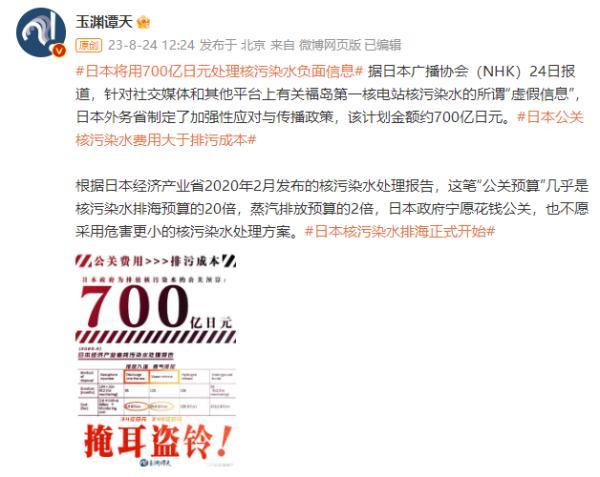据日本广播协会(NHK)24日报道,针对社交媒体和其他平台上有关福岛第一核电站核污染水的所谓“虚假信息”,日本外务省制定了加强性应对与传播政策,该计划金额约700亿日元。