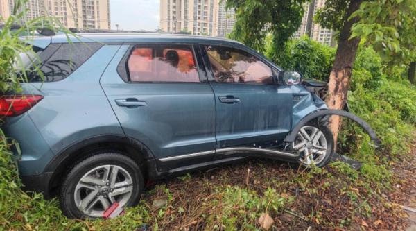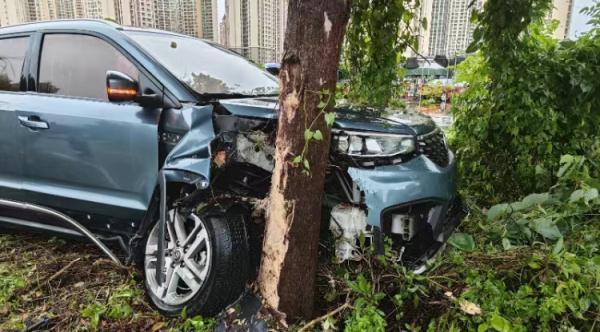 8月10日13时许,中山五桂山交警指挥中心接警称桂南林新路某路段发生一起交通事故,请求处警。民警接报后立即赶赴现场,只见一辆蓝色小车撞上道路旁的大树,造成车辆严重受损,大树树皮剥落。