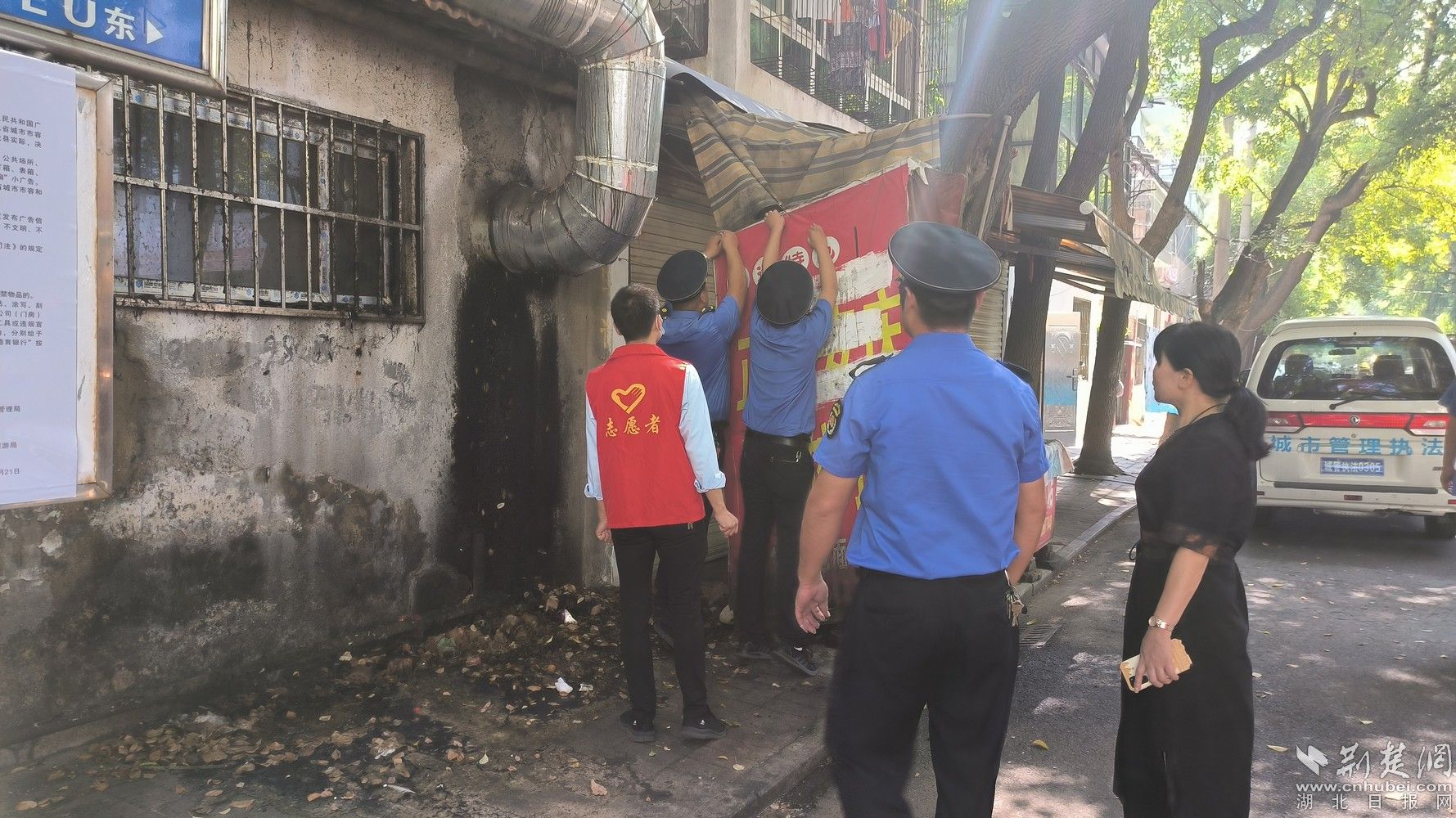 荆楚网(湖北日报网)讯(通讯员黄敏)“请把门口的树叶打扫干净,这些塑料椅子要收进去,不能摆在路边。”