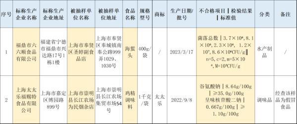 点击查看大图对上述抽检中发现的不合格产品,市市场监管局已要求相关区市场监督管理局及时对不合格食品及其生产经营者进行调查处理,依法查处违法行为,进一步督促经营者履行法定义务,并将相关情况记入食品生产经营者食品安全信用档案。查处情况由经营者所在地负责案件查办的区市场监督管理局按规定公开。科普01谷氨酸钠谷氨酸钠是味精的主要成分,它具有特殊的鲜味,主要用于食品、菜肴的增鲜,主要反映了味精的品质质量。02呈味核苷酸二钠呈味核苷酸二钠作为增味剂用于食品,可增强制品的鲜味,通常与谷氨酸钠混合使用,是鸡精、鸡粉的组成成分。03菌落总数菌落总数是指示性微生物指标,并非致病菌指标。主要用来评价食品清洁度,反映食品在生产过程中是否符合卫生要求。特别提醒消费者,如购买或在市场上发现附件所列的不合格食品时,请拨打食品安全投诉举报电话12315进行投诉举报。资料:市市场监管局来源:上海发布