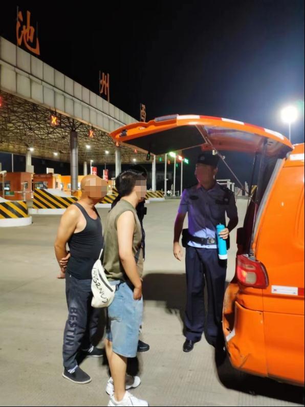 近日,安徽省池州市公安局贵池分局禁毒大队、特警大队、秋江派出所“所队联合”于夏夜治安巡查宣防第二次集中统一行动期间,在池州西高速路口对来往车辆执勤盘查时,发现一辆货车副驾驶人员神色可疑,民警立即责令驾驶员停车熄火并接受检查。