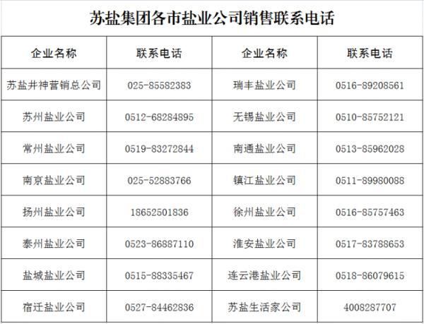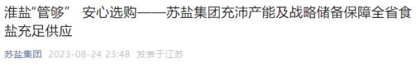 “淮盐管够,请消费者安心选购,不必囤货。”苏盐集团主要负责人表示,“作为全省食盐供应主渠道,苏盐集团在2003年非典肺炎、2011年日本大地震等历次食盐市场波动中,均很好地保障了食盐市场供应,起到了压舱石和顶梁柱作用。”