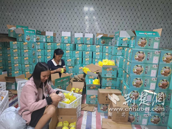 秋月梨打包装箱。通讯员供图