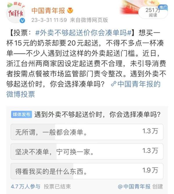 @中国青年报 官方微博曾调查网友们的凑单“意愿”——