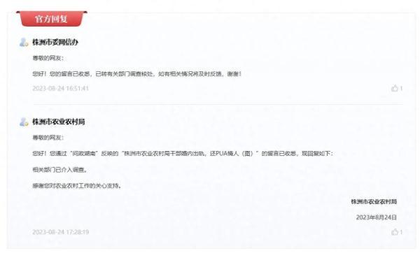8月24日下午,株洲市委网信办回复称,已转至有关部门调查核处,如有相关情况将及时反馈。