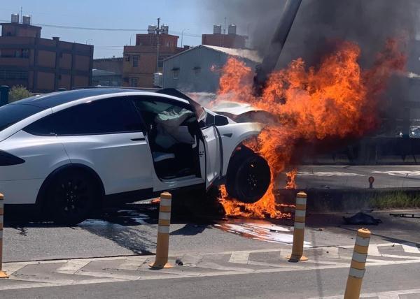 林志颖驾车撞上隔离带后起火(图片来源:台媒)