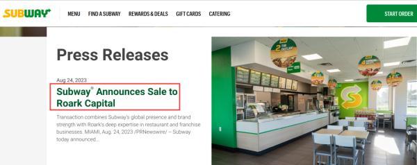 赛百味在官网上公告了这一消息