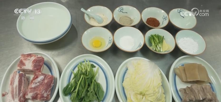 四肥六瘦的五花肉,切丁拌料,再加上虾子摔打上劲儿,捏成团,放入提前准备好的骨汤,这就开火炖了。此时,距离列车到达还有2个小时。