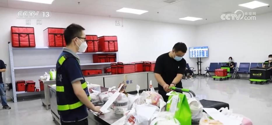 旅客在12306手机App订购餐品后,接单车站内的商铺便加紧制作,并统一送至高铁配送中心,工作人员要赶在列车到站前赶往列车停靠地点,交到列车餐吧乘务员手中,由乘务员负责送到旅客所在的座位。
