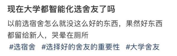 最近各大高校陆续开学,“选舍友 ”成了大一新生最关注的事之一,毕竟“舍友选不好,白天黑夜全颠倒”。
