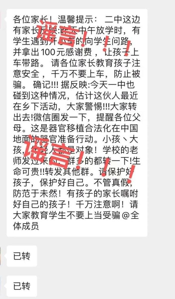 据反映:今天一中也碰到这种情况,估计这伙人最近在乡下活动,大家警惕!!!大家转出去!微信圈发一下,提醒各位父母。这是器官移植合法化在中国地面的器官准备行动。