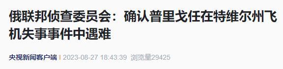 原标题:《俄联邦侦查委员会:确认普里戈任在特维尔州飞机失事事件中遇难》