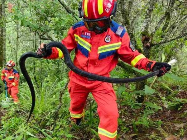8月25日12时05分,普洱市景东县消防救援大队接到龙街乡派出所转警称:位于龙街乡街道后面树林里有一条眼镜王蛇出没,对周边村民安全造成威胁,请求前往处置。接到报警后,大队出动1车5人前往处置。