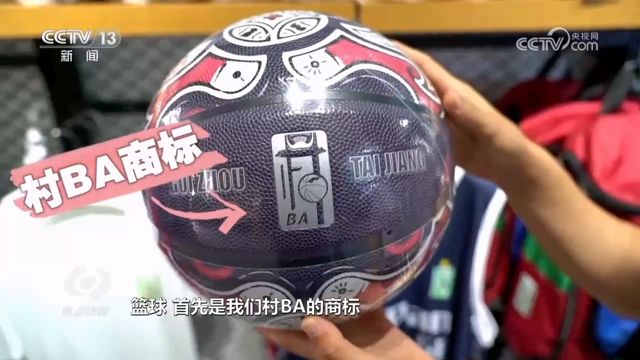 “村BA”线下体验店工作人员欧正霜:“篮球服、球包,还有篮球以及村宝宝这几个产品都卖得比较好。篮球,首先是‘村BA’的商标,然后有我们的地标贵州台盘,再有苗绣绣片的图案在上面。”