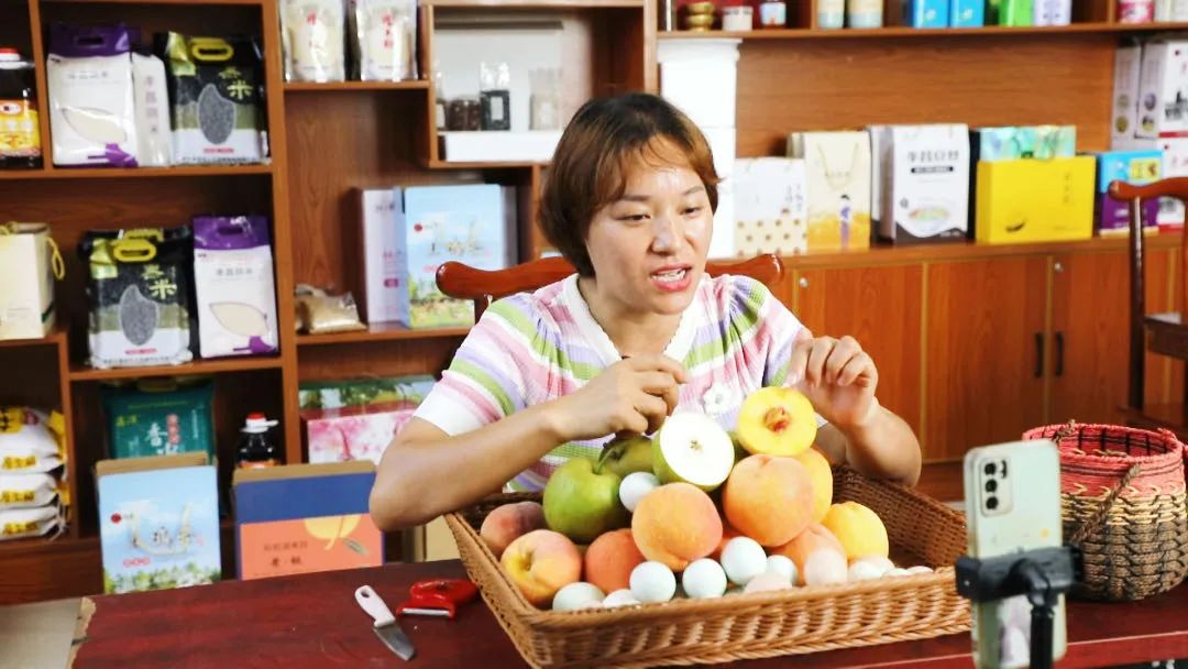 王素美是仙雨砦村人,返乡创业开办养鸡场,成立湖北仙人石种养殖农民专业合作社。在村委会和驻村工作队的帮助下,她参加县电商产业园培训,试水电商直播,经过几年摸索,面对镜头愈发自然大方,被粉丝称为“鸡蛋姐”。