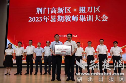 荆楚网(湖北日报网)讯(通讯员 刘伟 周哲 何雨仙)8月26日,在2023年掇刀区暑期教师集训大会上,湖北楚大智能装备股份有限公司董事长邓家辉代表公司捐赠掇刀教育“强师计划”10万元,用于奖励掇刀区50名优秀教师。据了解,湖北楚大智能装备股份有限公司将连续10年每年捐赠掇刀教育“强师计划”10万元。