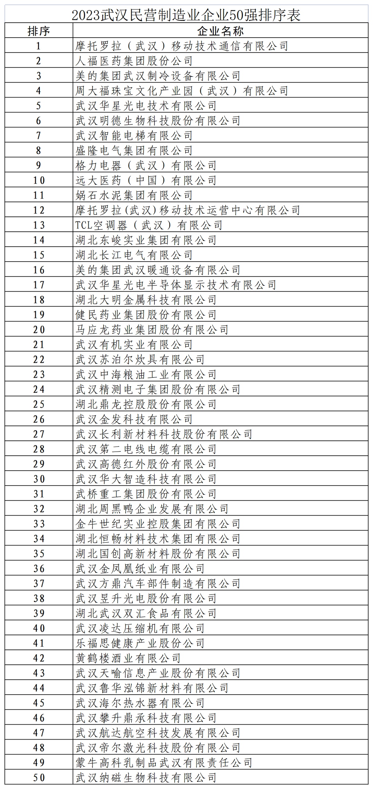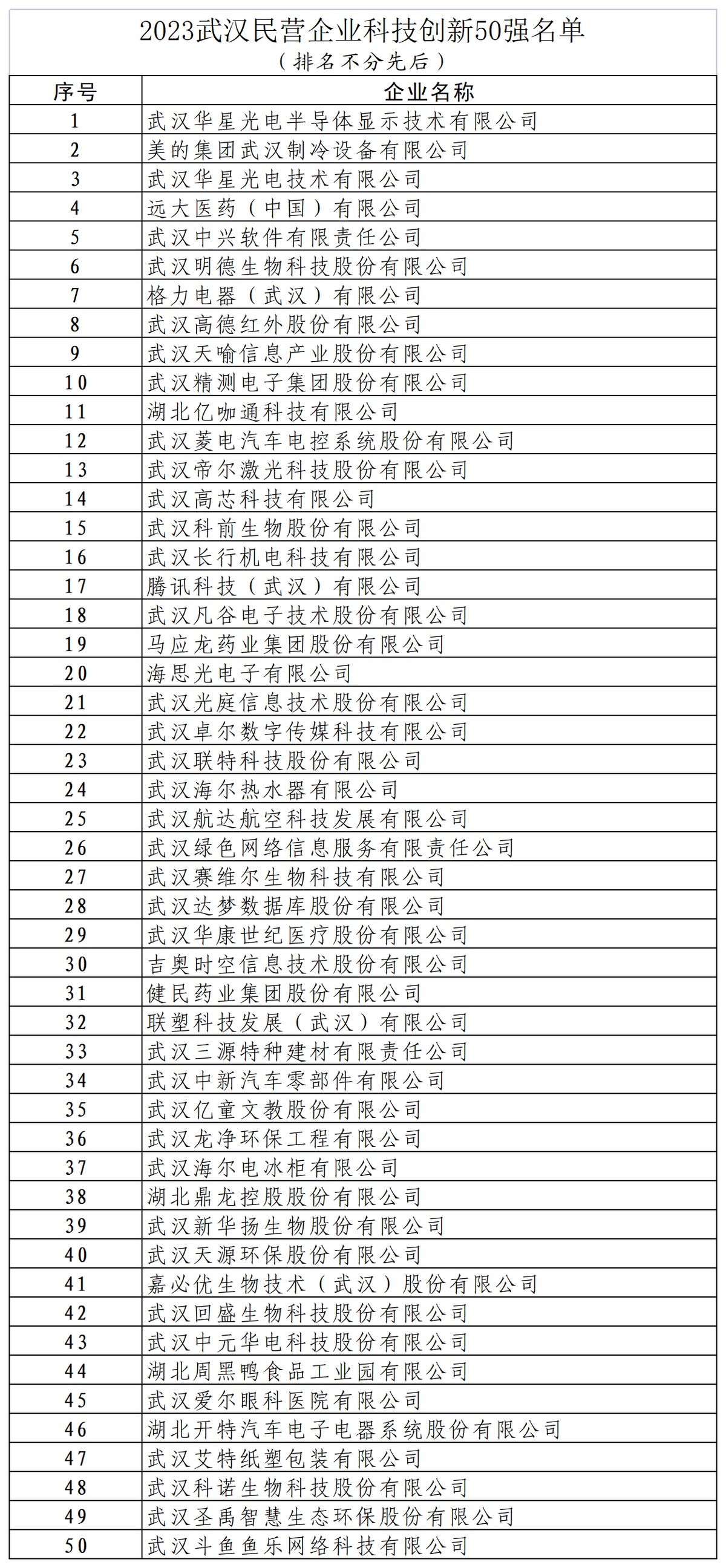 2015年起,武汉市连续九年发布“武汉民营企业100强”榜单、连续六年发布“武汉民营制造业企业50强”榜单,今年又首次发布“武汉民营企业科技创新50强”榜单。