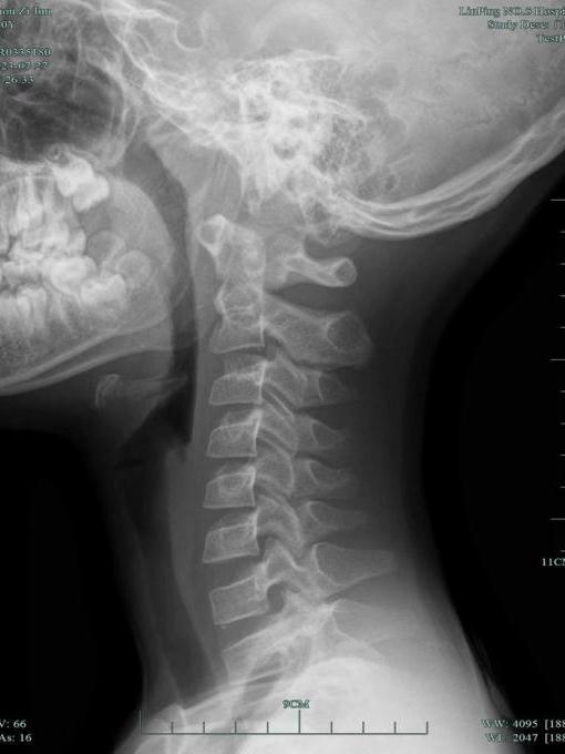王主任查看小杰的颈部DR片惊讶地吐出四个字:一塌糊涂!