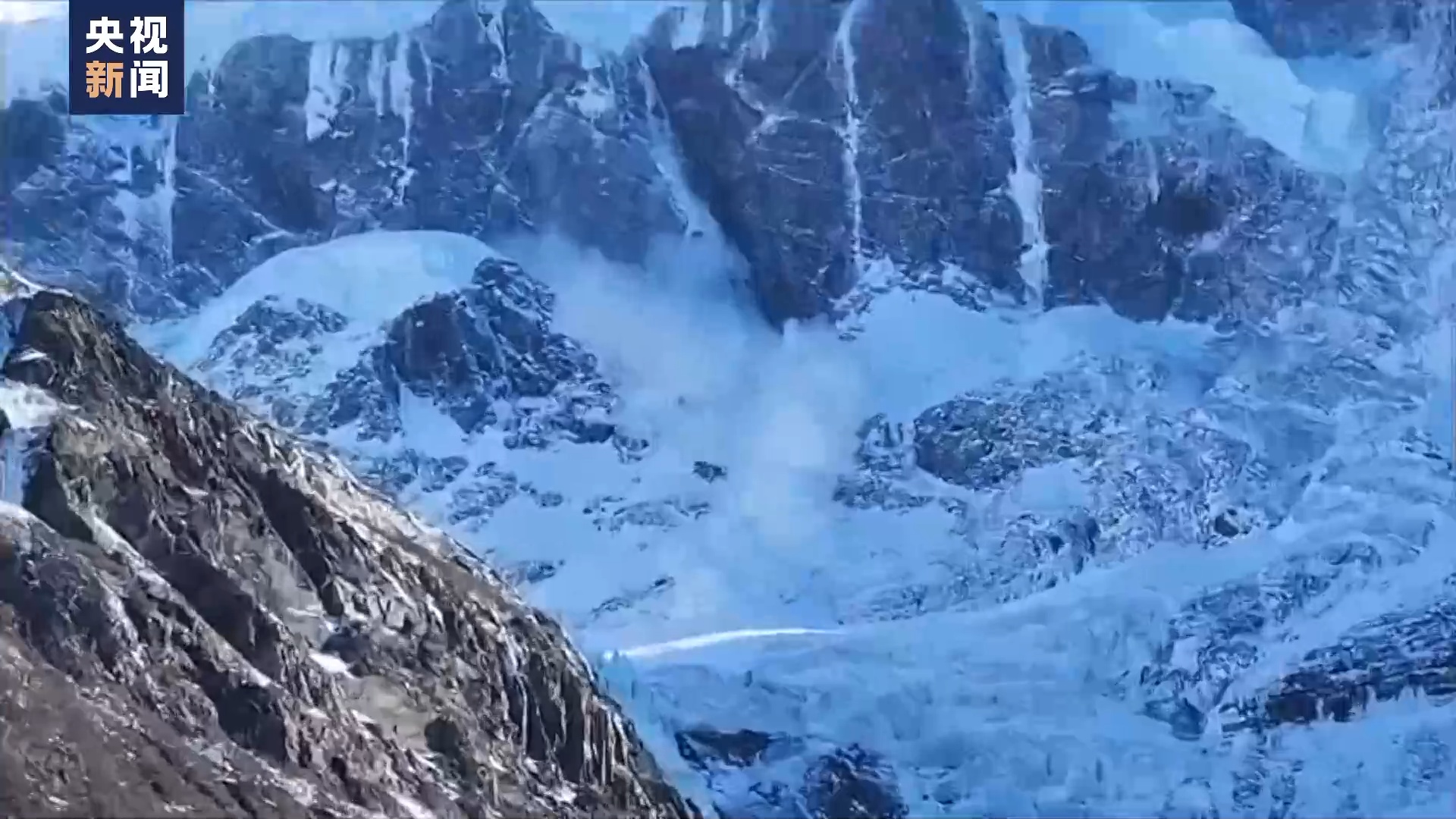 就在记者拍摄法国山谷冰川的当天,山谷里传来一声巨响,山顶上一大块雪体崩塌了。