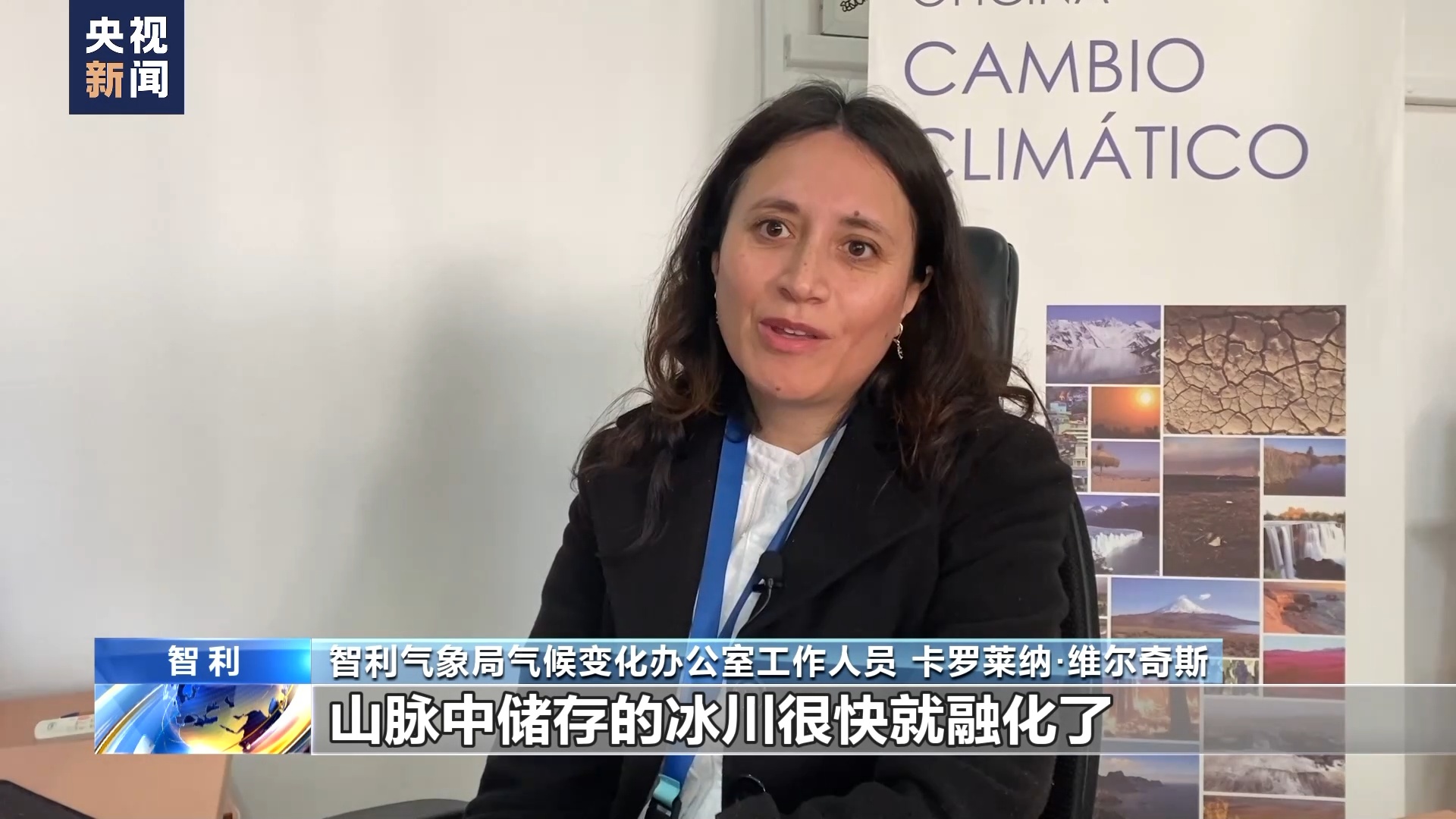 智利气象局气候变化办公室工作人员 卡罗莱纳·维尔奇斯:由于气温很高,山脉中储存的冰川很快就融化了。