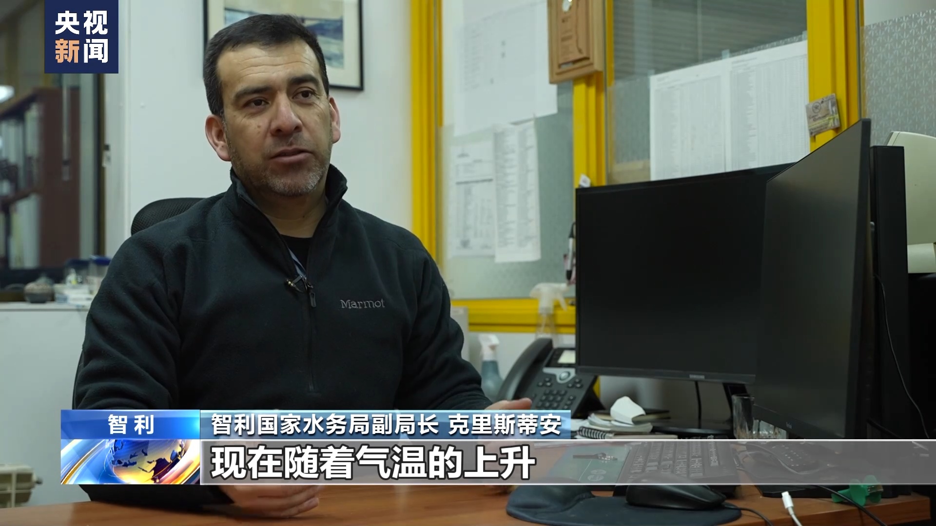 智利国家水务局副局长 克里斯蒂安:我们看到,在经历了十二三年的干旱后,现在随着气温的上升,我们的积雪越来越少,甚至开始有降水了,更多的降雨让冰川进一步加速融化。