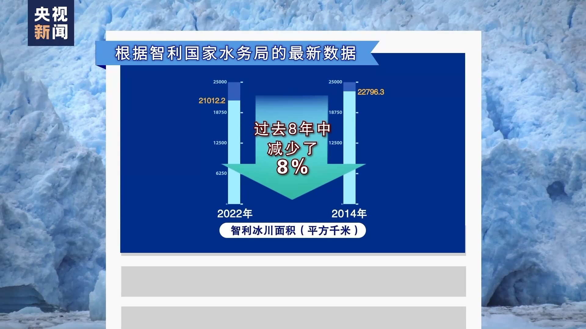 根据智利国家水务局的最新数据,截至2022年,智利境内共有26169座冰川,涵盖面积21012.2平方公里。对比2014年的统计数据,2022年智利冰川的面积减少了8%。