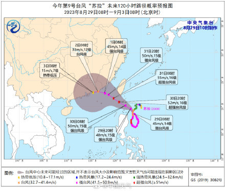 今(29日)早,台风“达维”变性为温带气旋,结束了三台共舞局面,目前“苏拉”、“海葵”仍在趋近我国。中央气象台刚刚发布台风蓝色预警,预计“苏拉”于31日早晨移入南海东北部海面,强度将再次增强,并逐渐向福建南部到广东东部一带沿海靠近,有可能于9月1日夜间到2日上午在广东东部一带沿海登陆(台风级或强台风级,35-42米/秒,12-14级),也有可能在广东东部近岸海面向西偏南方向移动。