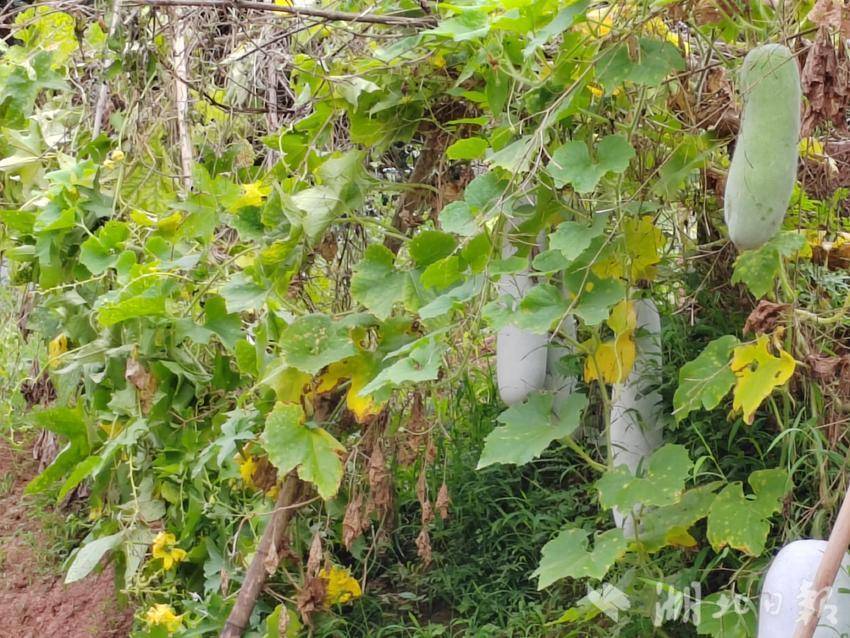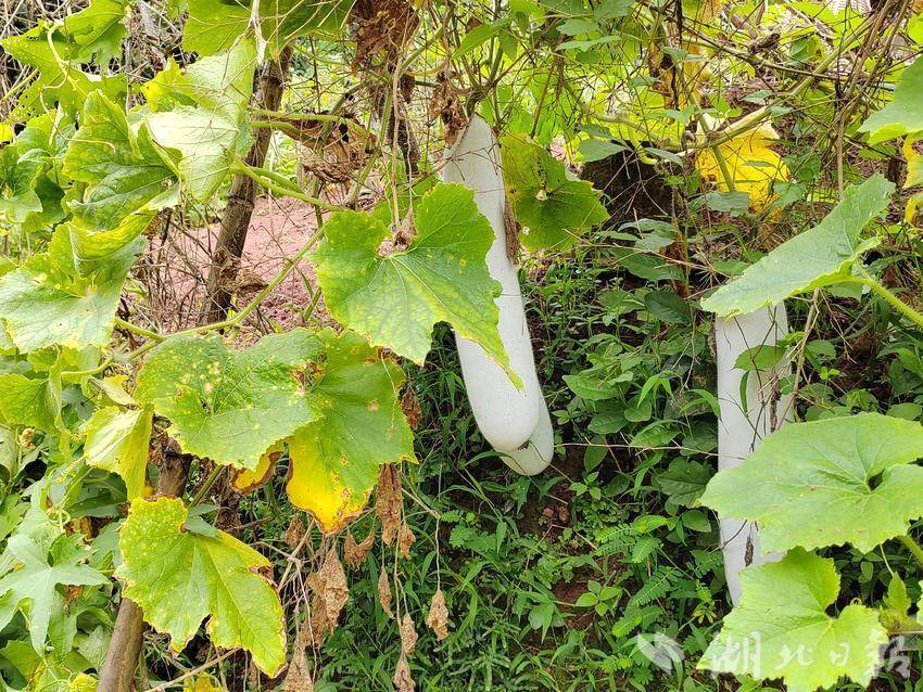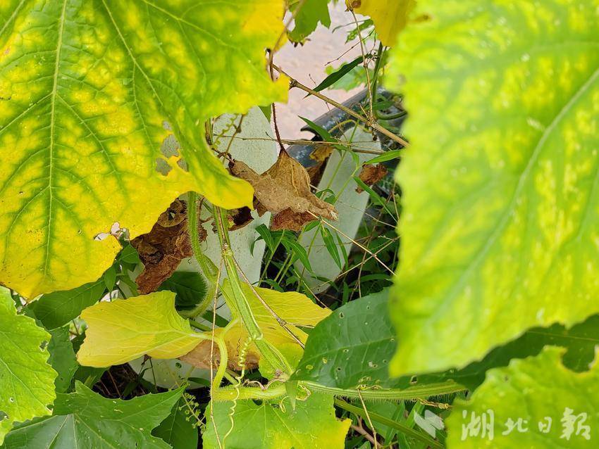 湖北日报客户端讯(通讯员曹玲、徐晶晶)秋天是丰收的季节,大冬瓜也长成了一个胖娃娃,有的躺在地上呼呼大睡,有的挂在藤上打秋千,有的隐在瓜叶中窃窃私语,尽管瓜叶已经青中带黄,但灰白色的瓜无不显出生机盎然,欣欣向荣的景象。