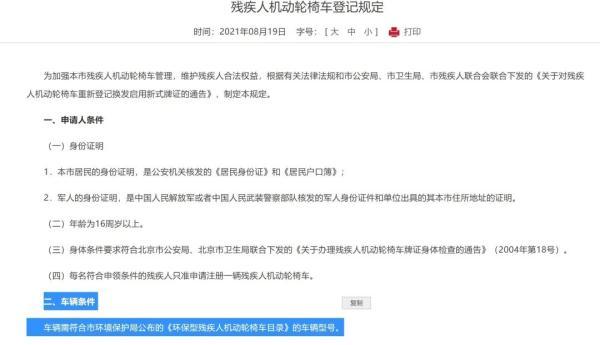 记者查询发现,北京市公安局2010年发布的《关于加强三轮摩托车和残疾人机动轮椅车管理的通告》中提到,列入本市《准予核发牌证的环保型残疾人机动轮椅车目录》的残疾人机动轮椅车,六环路以内实行定点销售。每名残疾人只限购买1辆残疾人机动轮椅车。《残疾人机动轮椅车登记规定》中对于车辆条件的规定则是:车辆需符合市环境保护局公布的《环保型残疾人机动轮椅车目录》的车辆型号。但记者在北京市交管局和北京市生态环境局的官网中都没有找到这个目录。于是,记者以市民的身份拨打了北京市残联的热线电话,工作人员表示: