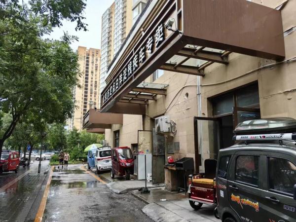 店门口的合规车(红色)/记者拍摄