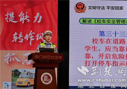 荆楚网(湖北日报网)讯(通讯员 谈媛媛) 8月份以来,荆门交警分批次前往校车公司开展校车安全检查,对检查中存在安全隐患的校车,在隐患排除前一律停止运行。