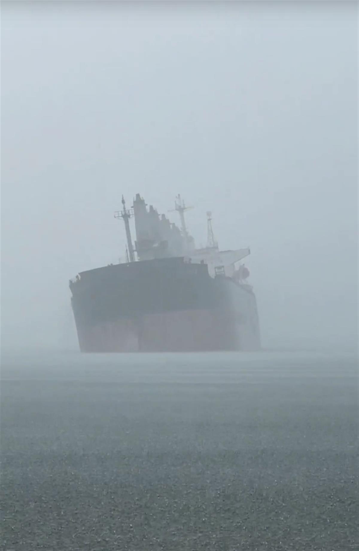 雨中的巨轮影像如同电影画面(来自网络视频)