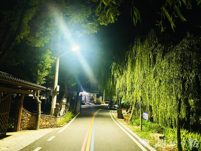 建设和美乡村,配齐湾组路灯。夜色降临,在一排排整齐明亮的路灯照明下,位于陡山乡光荣村的水乡曹砦却更添了几分白日没有的韵味。湖中泛舟,亮光中摇曳着游客的满足笑脸,桥边漫步,光影里泼洒下村民的美好愿景。