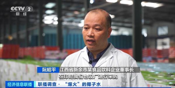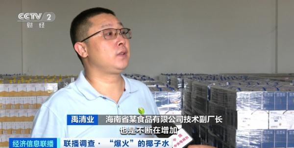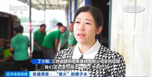 江西省新余市某食品饮料企业董事长阮昭平:今年和去年的数据对比,产量已经增长了600%。现在我们一天生产100多吨椰子水,基本上产品出来后,三天之内就销售一空。