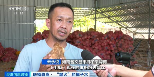 海南省文昌市椰子采购商云永悦:毛椰现在的价格跟去年比,涨幅在20%左右。用水的人比用肉的多。需求大于供给,所以就开始出现紧张。