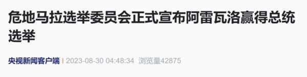 据央视新闻客户端消息,当地时间8月29日,危地马拉总统贾马太在选举委员会正式公布总统选举投票结果后确认,“种子运动”党候选人贝尔纳多·阿雷瓦洛赢得危地马拉总统选举。贾马太表示,他已向当选总统阿雷瓦洛和副总统发出邀请,9月4日下午在总统府举行第一次会议,制定政权交接时间表。