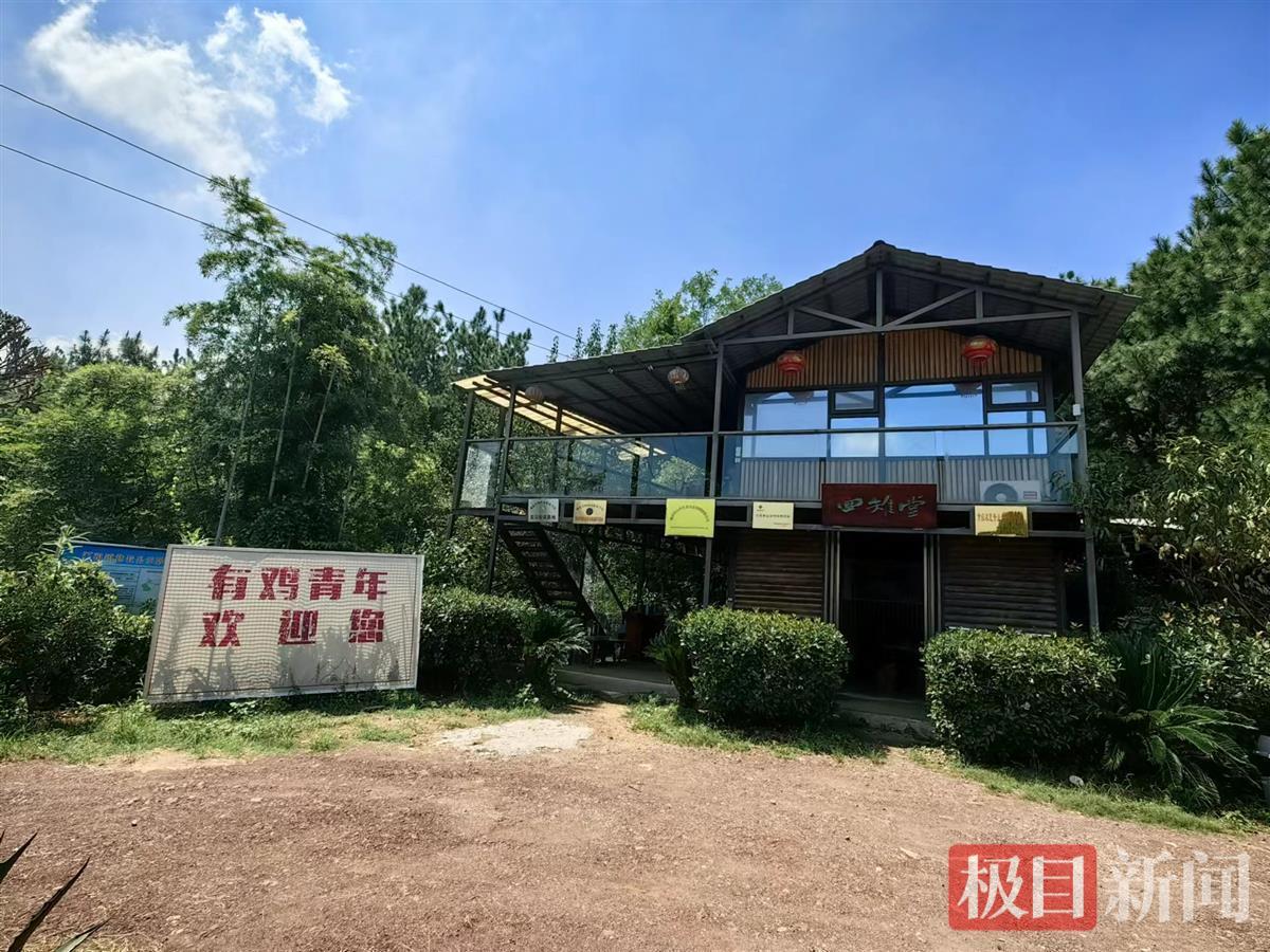 8月下旬,极目新闻记者驱车前往白雉山。在山脚,一座二层木屋出现在眼前,木屋选材楠竹。竹屋门口挂着牌匾,写着:四雉堂三个大字。