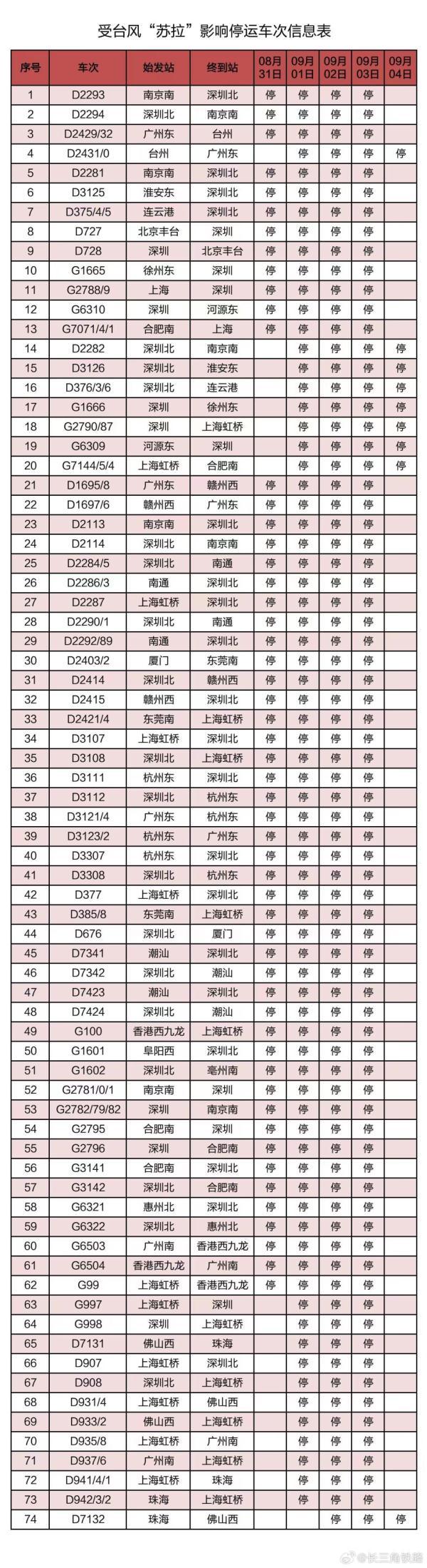 上下滑动查看具体停运车次↓